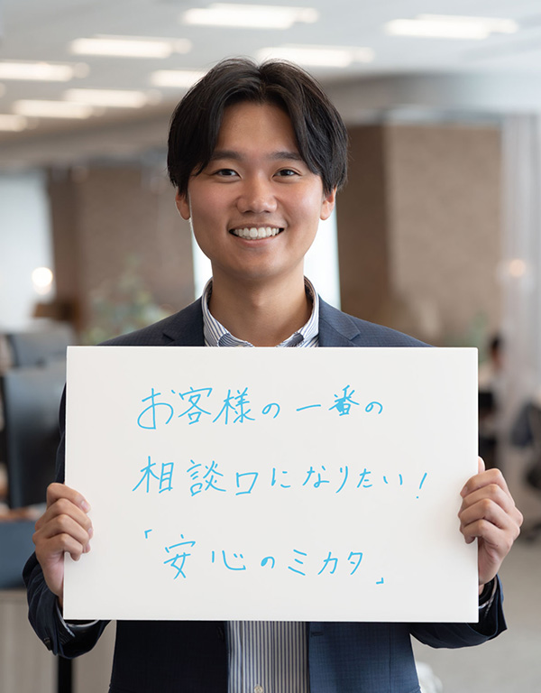 「まず相談してみよう」と思っていただける存在になることを目指しています。先輩から引き継いだお客様とも関係性を大切にし、信頼頂ける営業でありたいと心がけています。